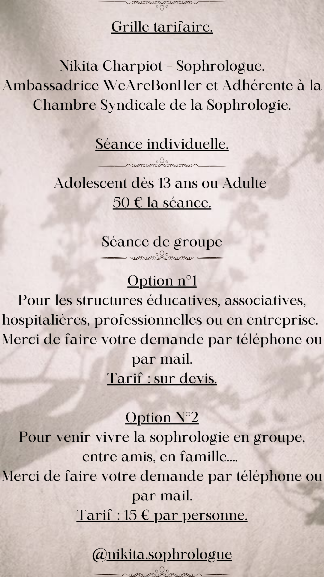 MYRIADE : de 20 à 30 €/séance, jusqu’à 3 séances/an.